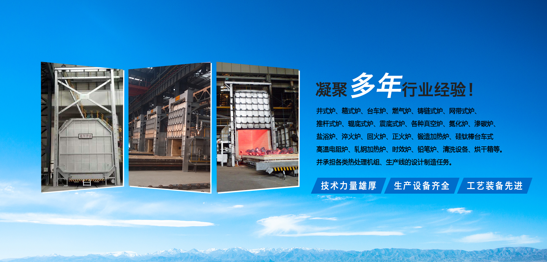 公司擁有多年的爐業經驗,工藝裝備先進,具有較強的技術力量和設計生產能力,主要產品有:井式爐、箱式爐、臺車爐、燃氣爐、鑄鏈式爐、網帶式爐、推桿式爐、輥底式爐、震底式爐、各種真空爐、氮化爐、滲碳爐、鹽浴爐、淬火爐、回火爐、正火爐、鍛造加熱爐、硅鈦棒臺車式高溫電阻爐、軋鋼加熱爐、時效爐、鉛筆爐、清洗設備、烘干箱等。并承擔各類熱處理機組、生產線的設計制造任務。